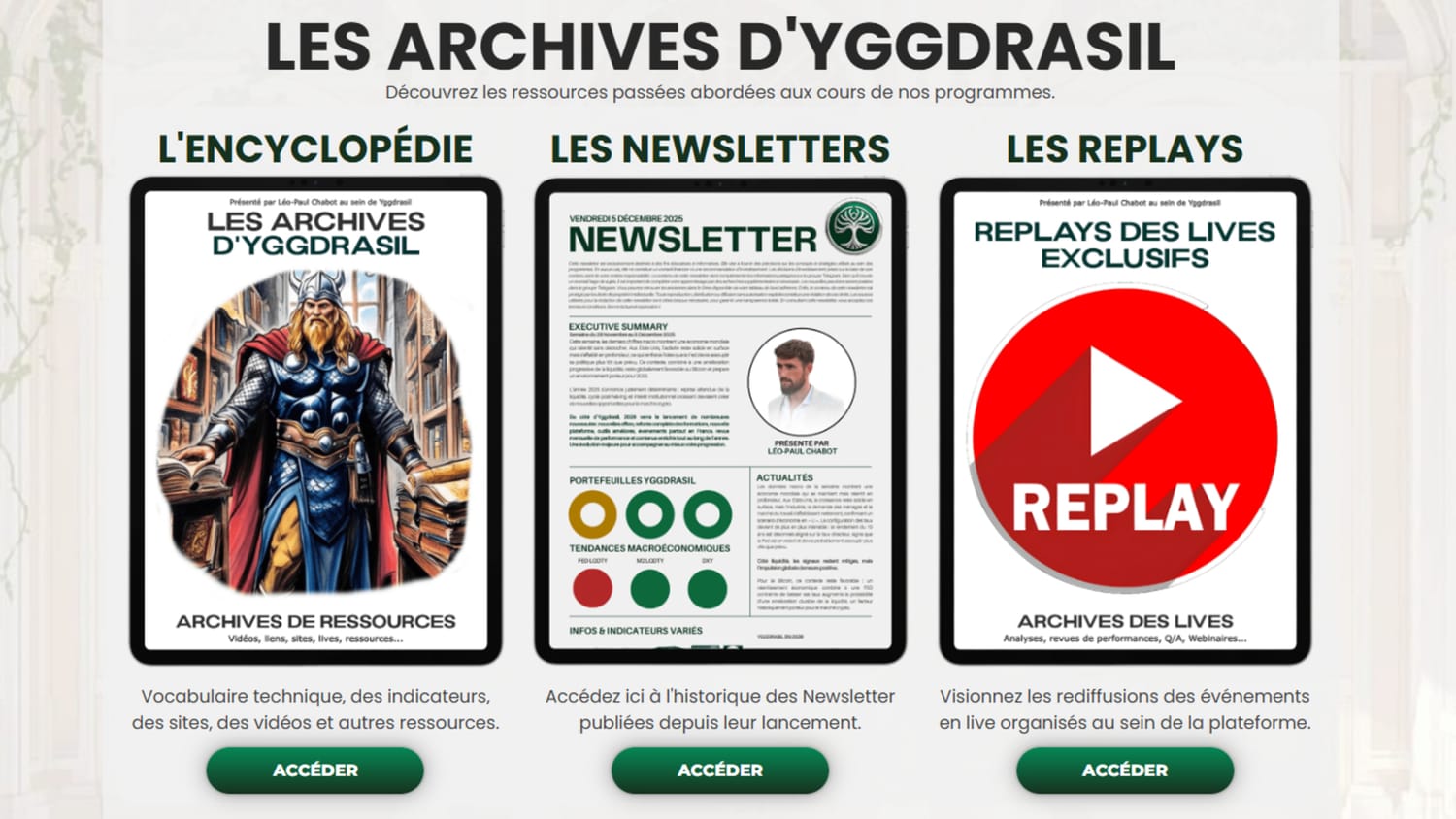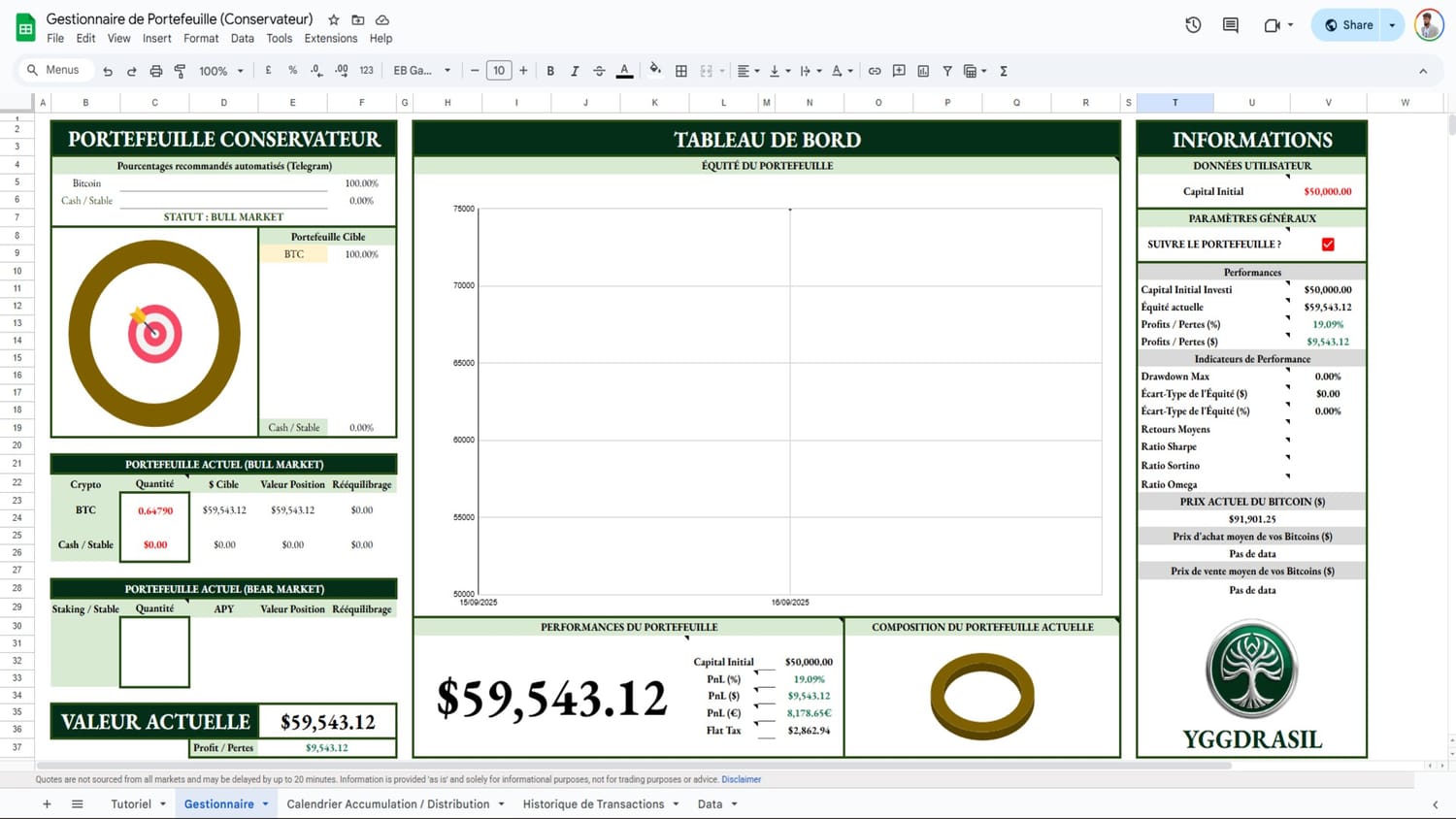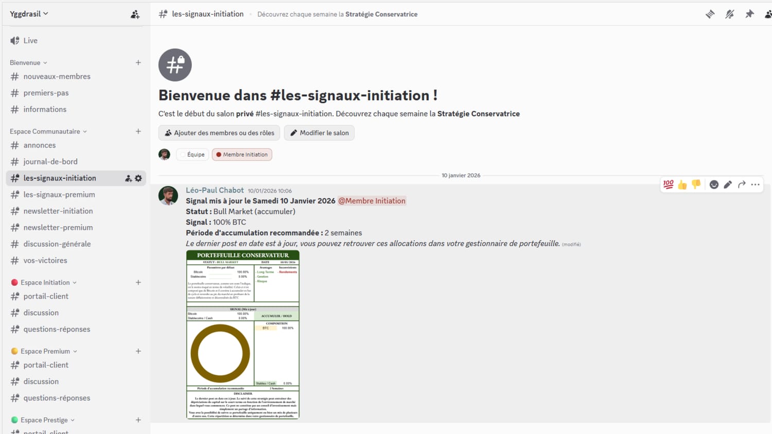 Un suivi mensuel des performances du portefeuille Conservateur ainsi qu'un accès transparent aux systèmes Yggdrasil.